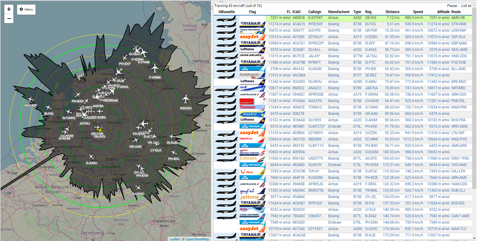 Een voorbeeld van een verzamelsite van vliegtuiggegevens is:(ingezoomed en gecentreerd op Lochem)